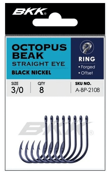 BKK Octopus Beak, hem tatlı hem de tuzlu suda en popüler yem iğnelerinden biridir. Gelişmiş kancaya takılma oranı sağlayan ofset iğne ucuna (ters) sahiptir. Geniş boşluk tasarımı sayesinde daha büyük ve hacimli yemler kullanılabilir. Siyah nikel kaplama, iğnenin keskinliğini korumaya yardımcı olur ve mükemmel tuzlu su direnci sağlar. En önemlisi de sivri iğne ucu muhteşem delme performansı sunar. Şimdi alternatif donanım seçenekleri için düz göz tasarımına sahip.