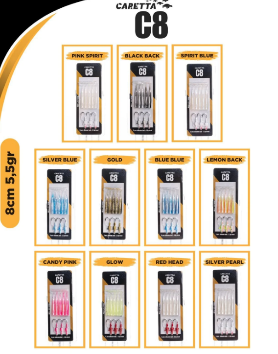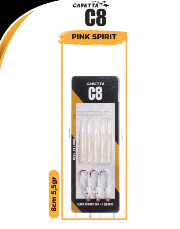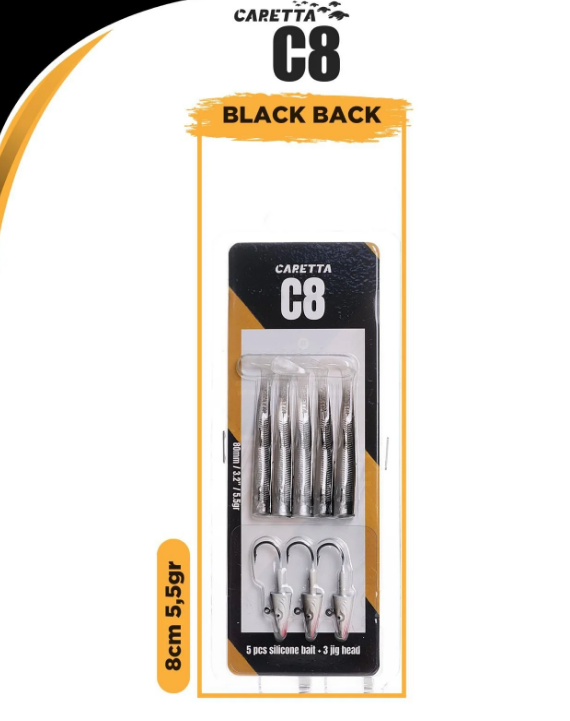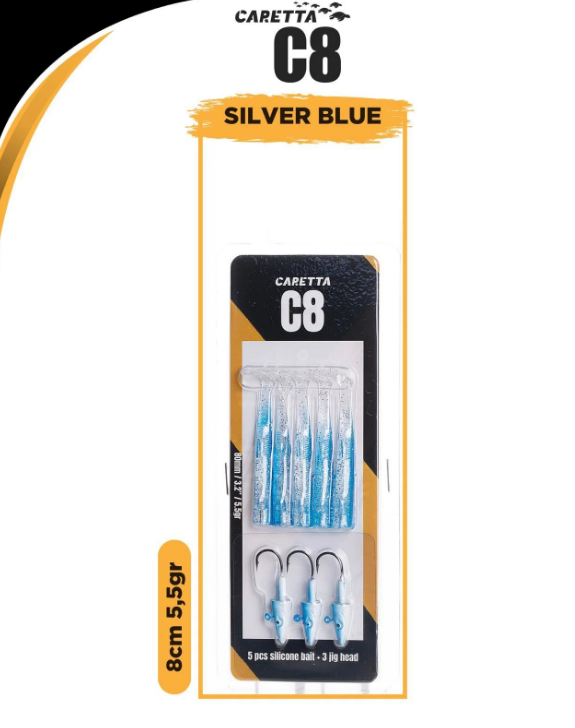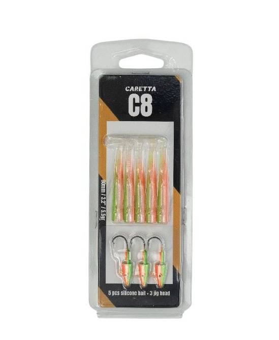 Caretta C8 Silikon Yem Seti ile avcılığın tadını çıkarın! Bu set, 5 adet silikon yem ve 3 adet jig head içermektedir. Yumuşak gövde yapısı ve esnek kuyruğu, yemlere doğal bir hareket kazandırarak su altında gerçek bir balık hissi uyandırır. Yüksek kaliteli boyası ve dikkat çekici renk seçenekleri sayesinde tüm avcı balıkların ilgisini çeker. Özellikle levrek, lüfer, turna ve sudak gibi avcı balıklar için mükemmel bir tercih olan Caretta C8, zor koşullarda bile etkileyici performans sergiler.