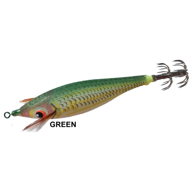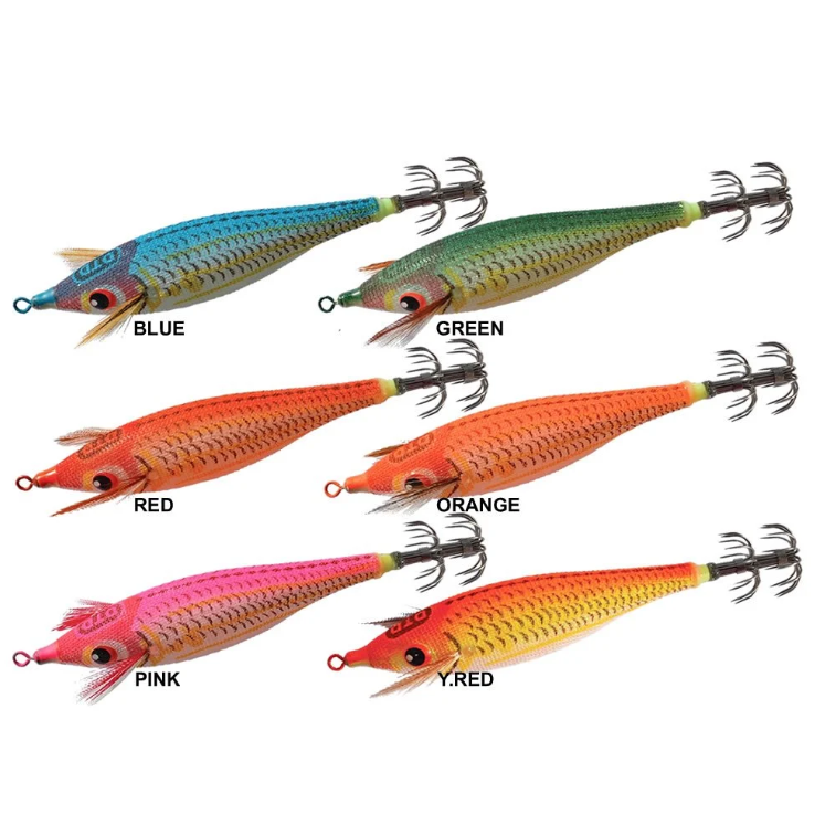 Barbun balığı simulasyonu gövde renk tasarımına sahip, İnce floresan renk tabakası kaplama sık dokuma keten kumaş gövde ve Aktif yüzme aksiyonlu kalamar zokası.