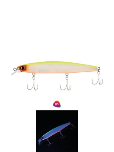 Fujin Gallant 120F, kıyıdan ve tekneden uzak atışlarda maksimum menzil sunan, güçlü ve dengeli yüzüşüyle önüne çıkan her avcı balığı cezbetmek üzere tasarlandı. İç ağırlık transfer sistemi sayesinde rüzgârlı havalarda bile harika erimlere ulaşır; agresif “jerk” ve “stop&go” tekniklerinde dengeli yan flaş yansımaları üretir. Yüksek UV 10 farklı çarpıcı renk seçeneğiyle gece avlarında bile hedefin dikkatini çekmekte usta. Lüfer, levrek, turna ve barakuda gibi agresif türlere karşı üstün performans gösterir.