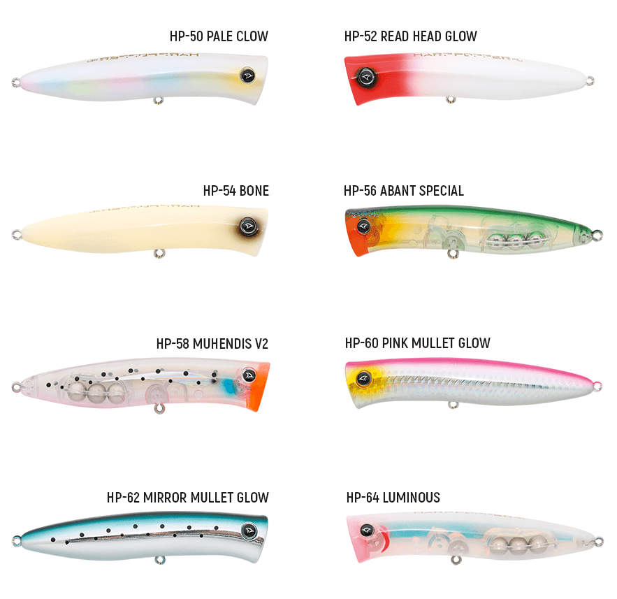 Hanfish Harp Popper 110: Dünya genelinde balık avıcıları tarafından seyir zevki ve kullanımı en popüler olarak kabul görülen model olan popper modelidir. Han Fish ailesinin yeni ürünü Harp Popper, popping eylemi sırasında panik halinde zigzaglar yaparak kaçan yem taklidi yapar. Bu eylemin sonunda kuyruk kısmını yavaşça suya batması yemi takip eden avcı tür için uygun pozisyonu sağlar. Harp Popper’ın sesli tasarımı ile avlandığınız bölgedeki tüm avcı türleri kendinize çekebilirsiniz. Boy: 11 cm