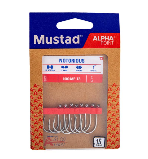 Yemleme için tasarlanan Notorious İğne, geleneksel ahtapot şeklini alır ve yakalama gücünü en üst düzeye çıkarır. Opti-Angle™ ailesinin en yeni iğne ucu olan AlphaPoint® 4.8 Teknolojisi, şimdiye kadarki en ince iğne ucu olacak şekilde keskin ve sivri şekilde geliştirilmiştir. Mustad, paslanmaz çelikten sonra 500 saatten fazla tuzlu su korozyon direnci için Titan Çelik kaplamayı uygulamıştır.