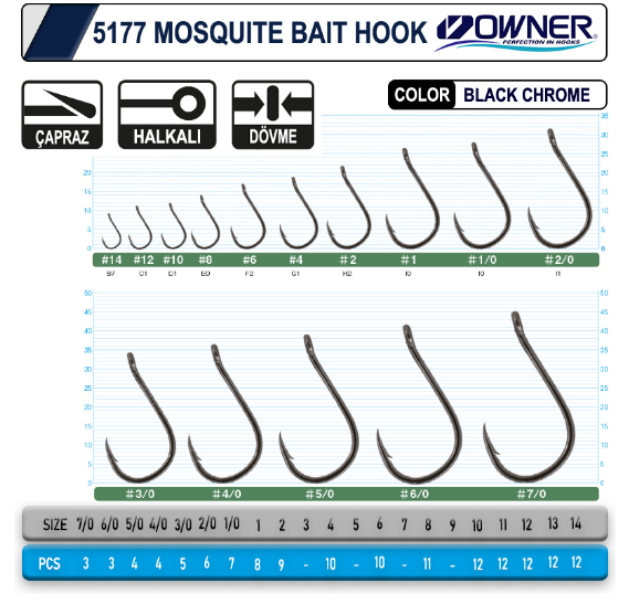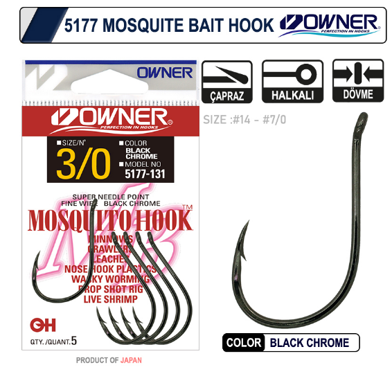 Owner 5177 Mosquito Hook Black Chrome Sinek İğne